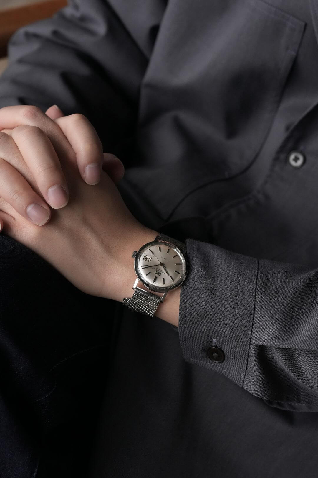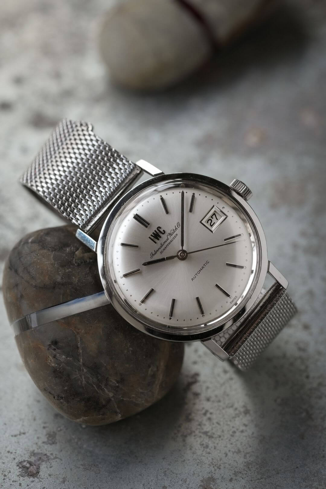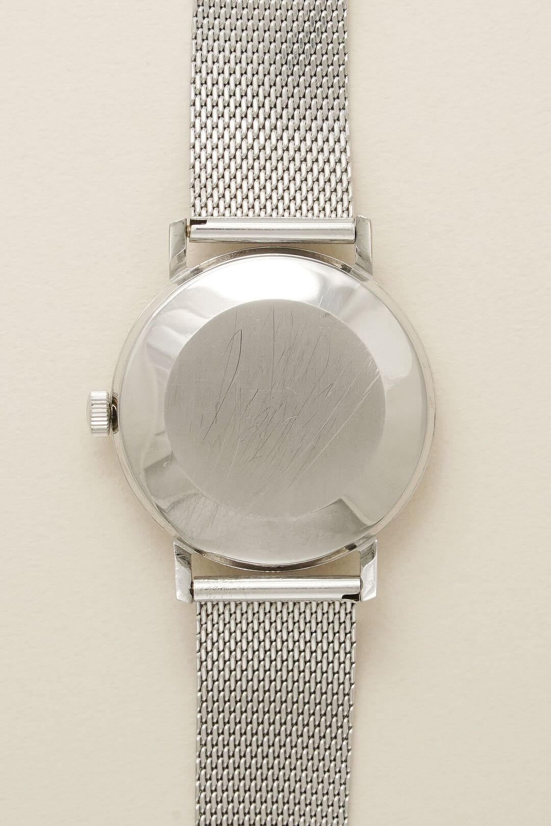 ブレスレットには、ステンレス製のIWC純正メッシュベルトをセッティング。季節や気分に合わせてレザーベルトなどへ付け替えを楽しめるほか、予備のブレスレットとしてお持ちいただくのもおすすめです。