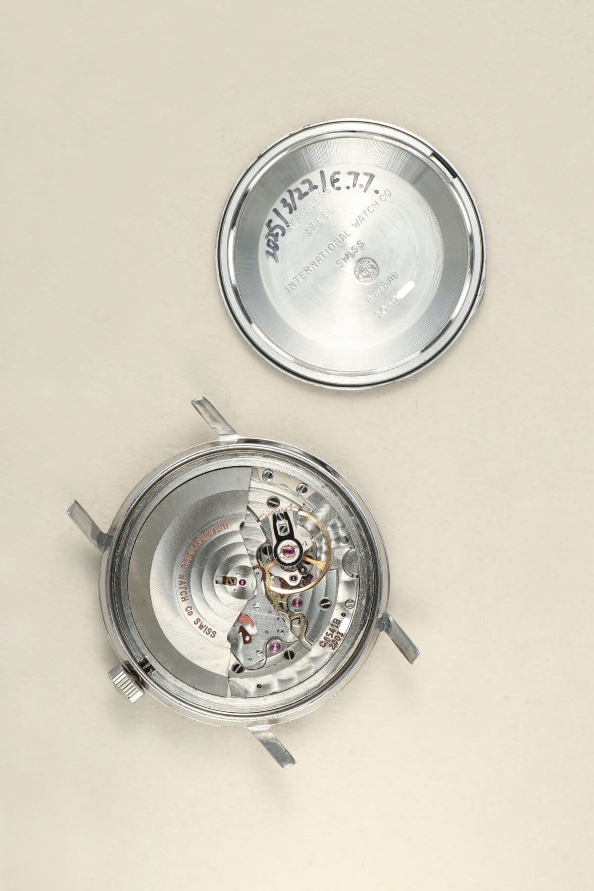 ムーブメントは、ペラトン式自動巻きの傑作キャリバー8541Bを搭載。「B」の表記はハック機能付きを意味し、同シリーズの最終型にあたります。23:45〜24:00の間を行き来することで日付の早送りが可能な、実用性に優れたIWCの歴史的ムーブメントの一つです。