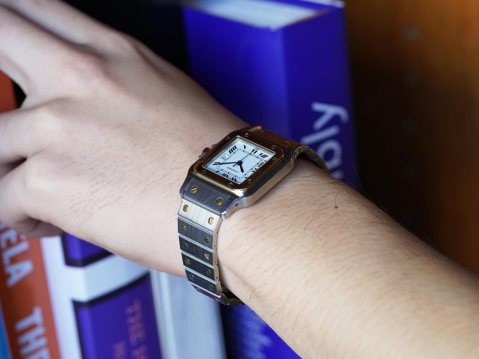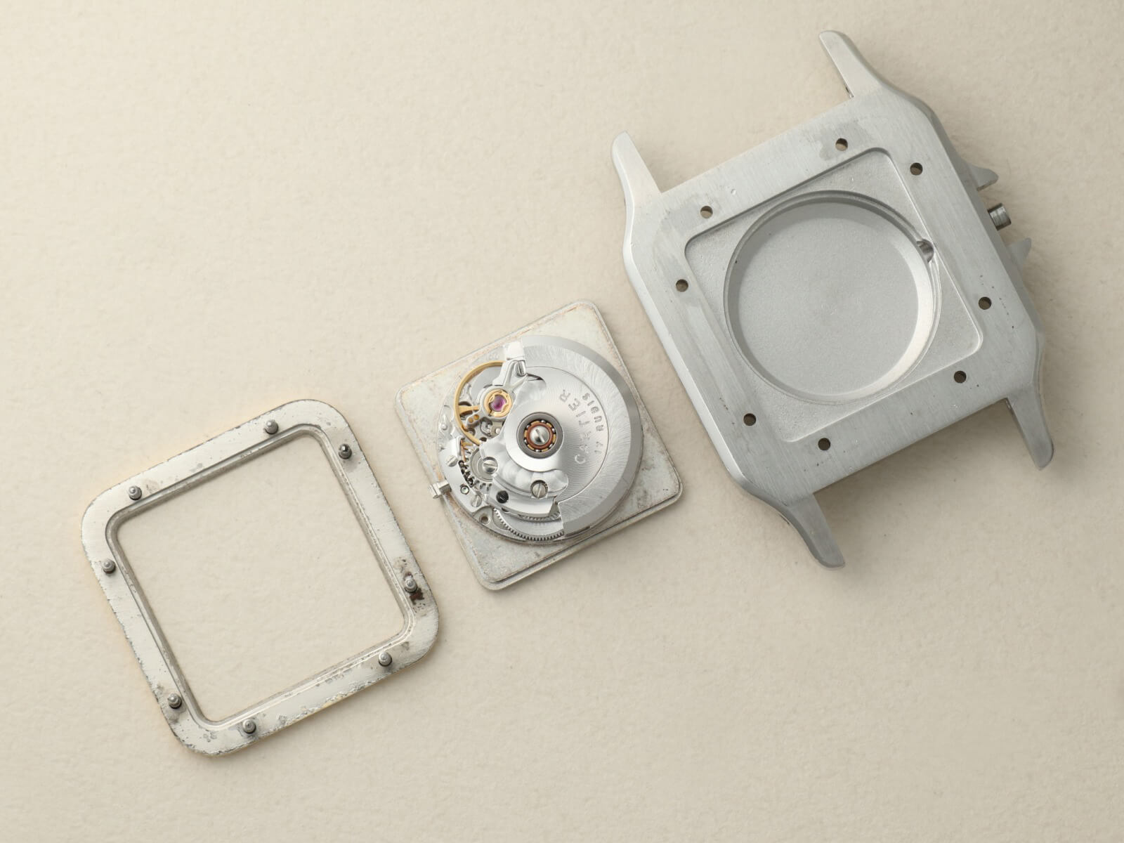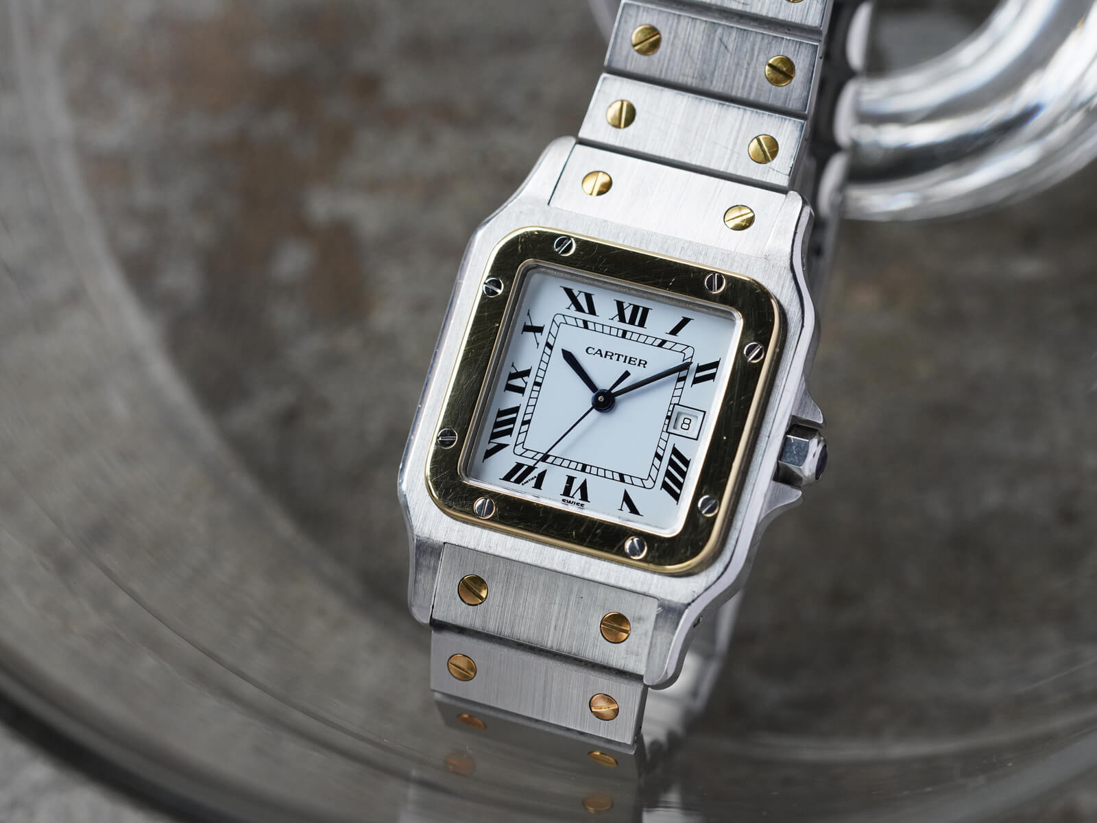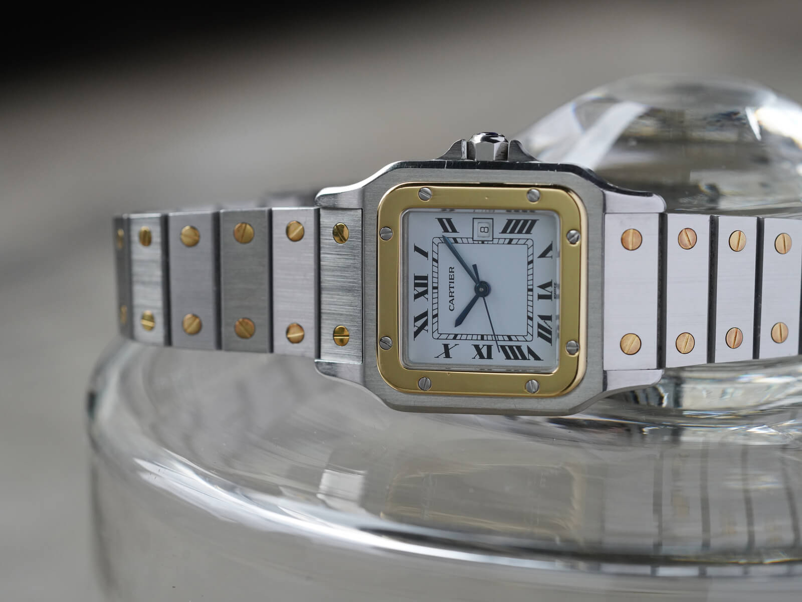 ブレスレットには、現在のバングルやリングにも使用されている、人気デザインの通称「ラブブレスレット/Love Bracelet」に、初期型カルティエロゴ入リシングルバックルがセッティング。初代サントスデュモンの特徴を受け継いだ完璧なフォルムの中に、洗練されたジュエリー要素を感じさせ、時を超えた今でも人々を魅了してくれる素敵な時計です。ケースの状態も良く実物を是非見て頂きたい個体です。