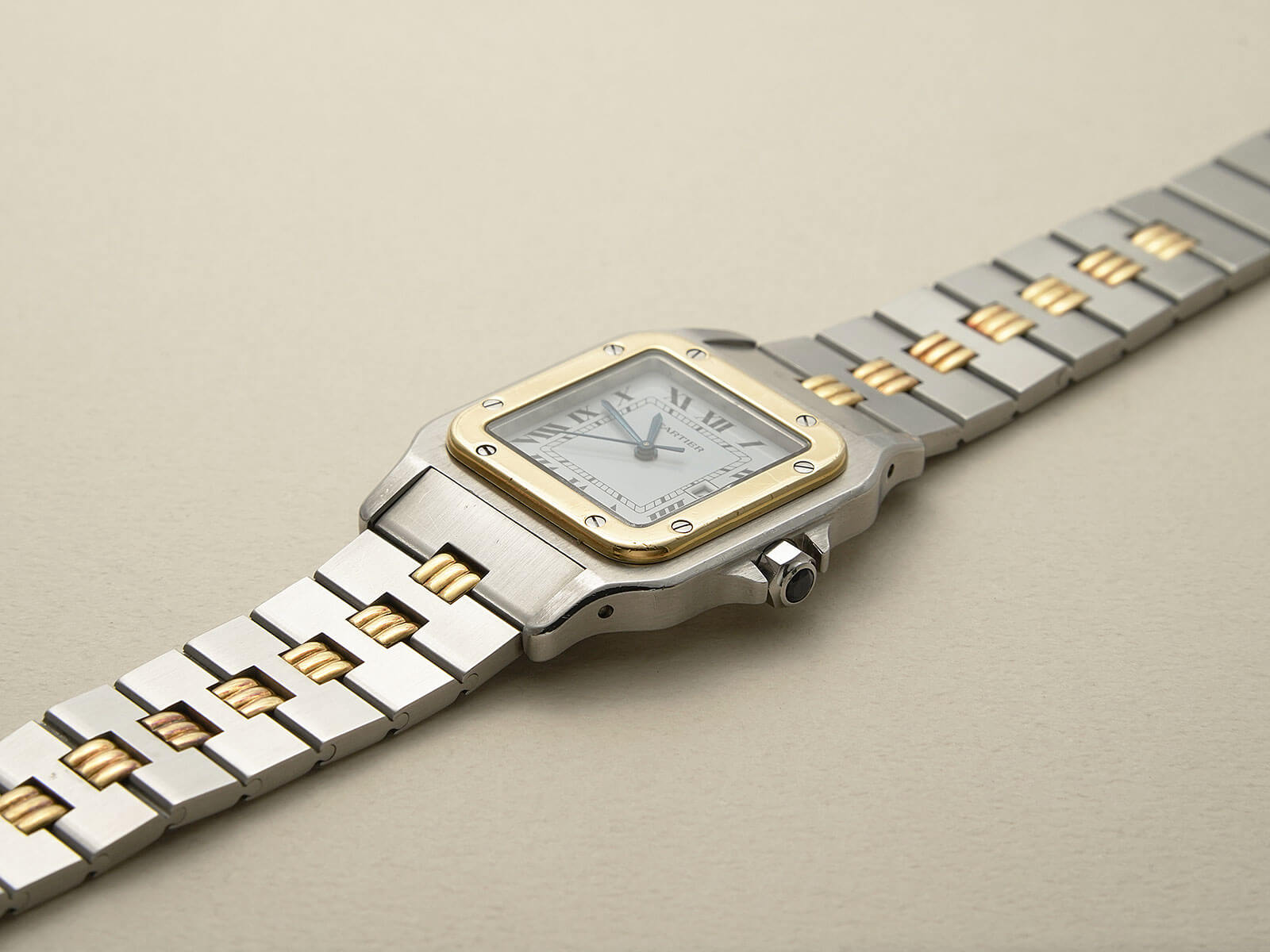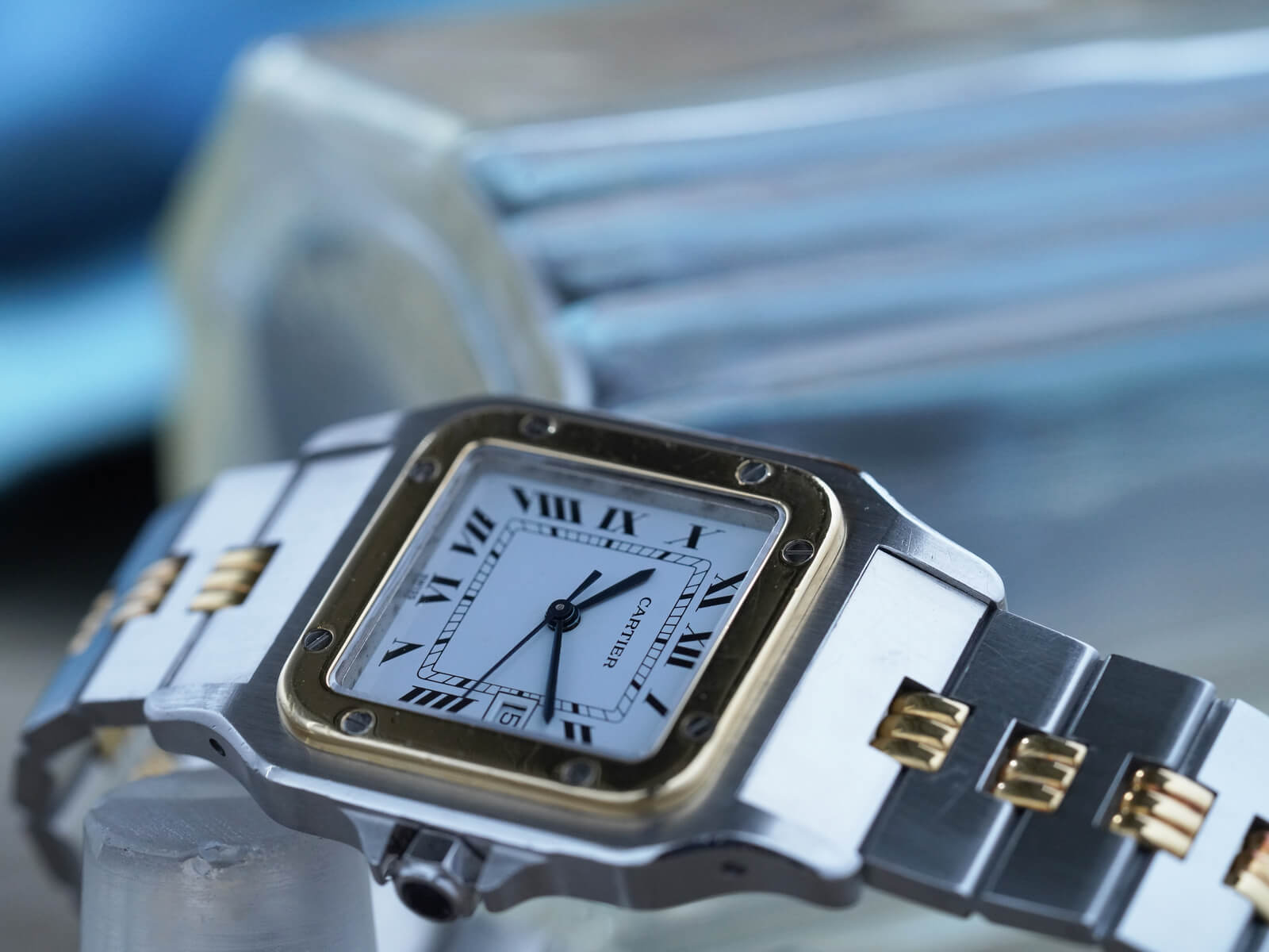 今回は、近代的なラグジュアリースポーツのような装いで、誕生から私達の心を魅了し続けてきたRef.2961のご紹介です。ステンレスにイエローゴールドを随所に配したコンビカラーで、腕元を上品に演出してくれるデザイン。ホワイトローマンダイヤルやブルースティールハンド、サファイアカボションリューズといったカルティエの伝統的な要素で纏め上げられた一本です。