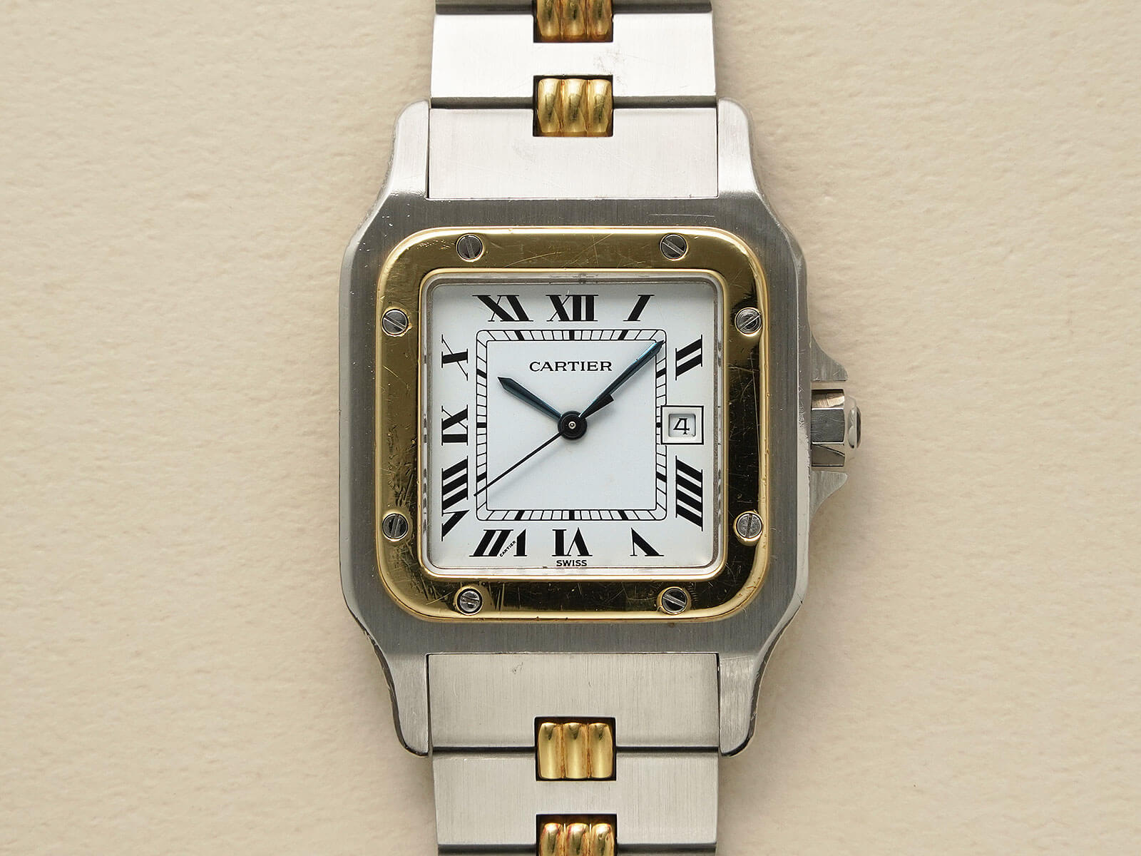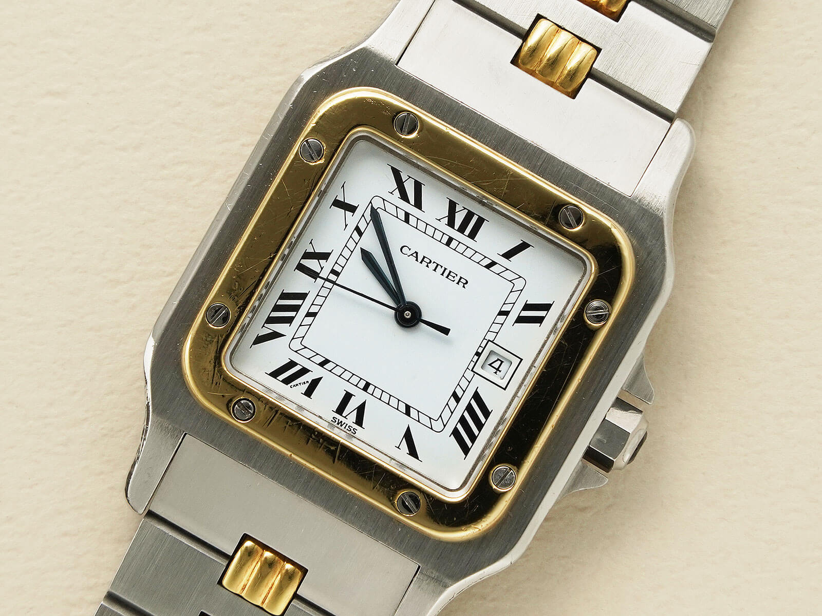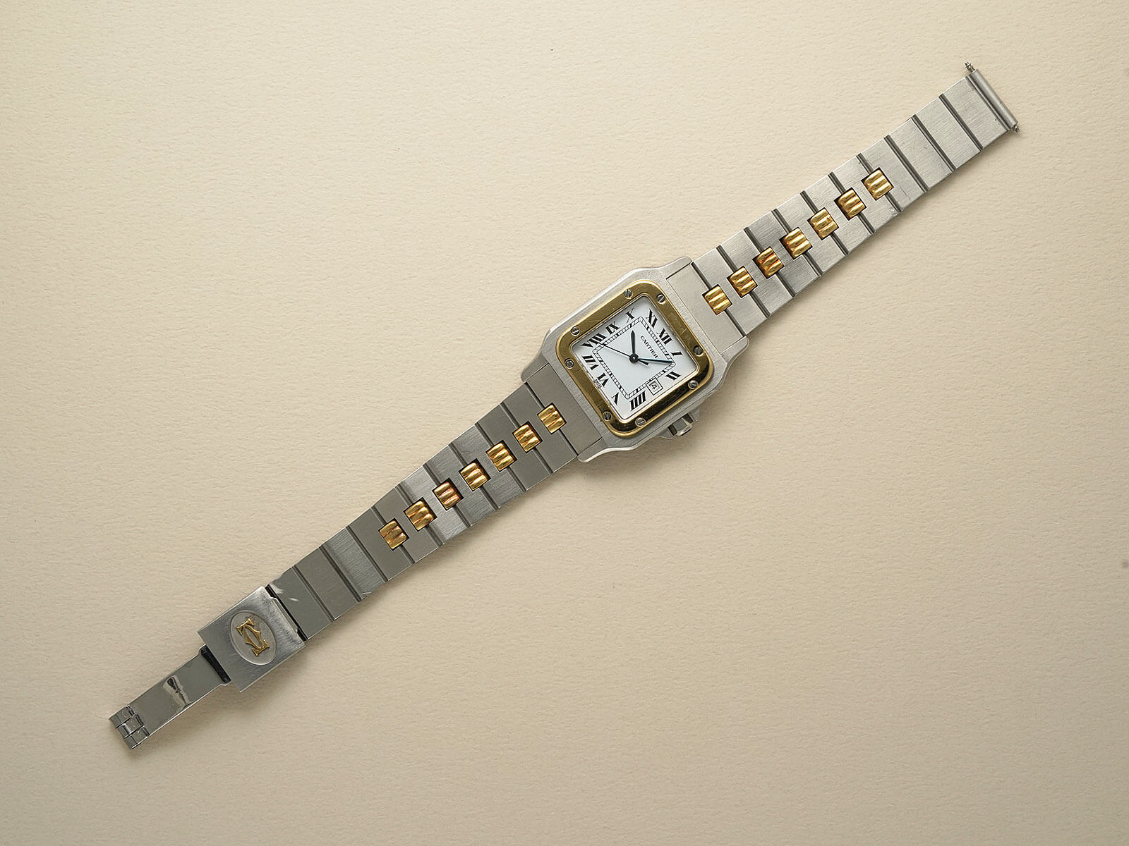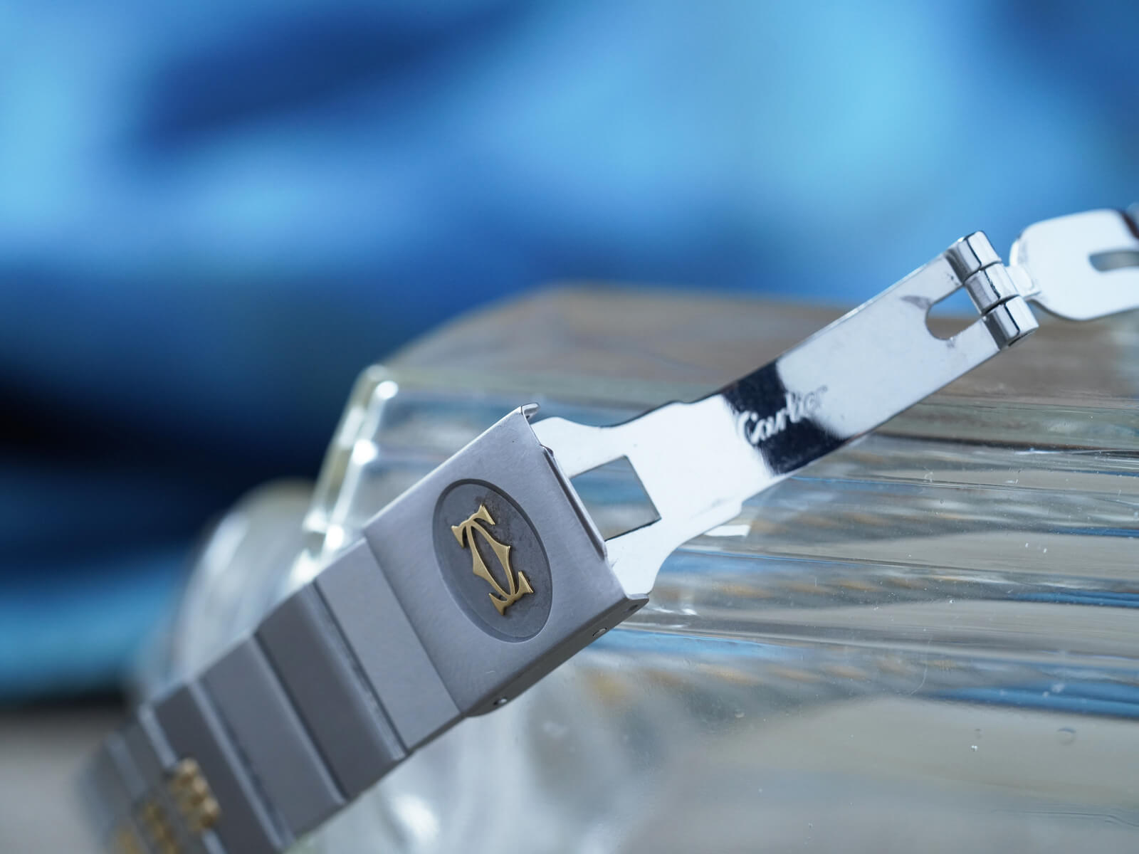 ブレスレットには、初期型ロゴ入りシングルバックルが付属した[Godron Bracelet/ゴドロンブレスレット]をセッティング。コマとコマを繋ぎ合わせたデザインで、ジュエラーならではのエレガントさを感じられます。カルティエらしい上品さとスポーティーなテイストが調和した素敵な時計です。是非、店頭にてご覧ください。