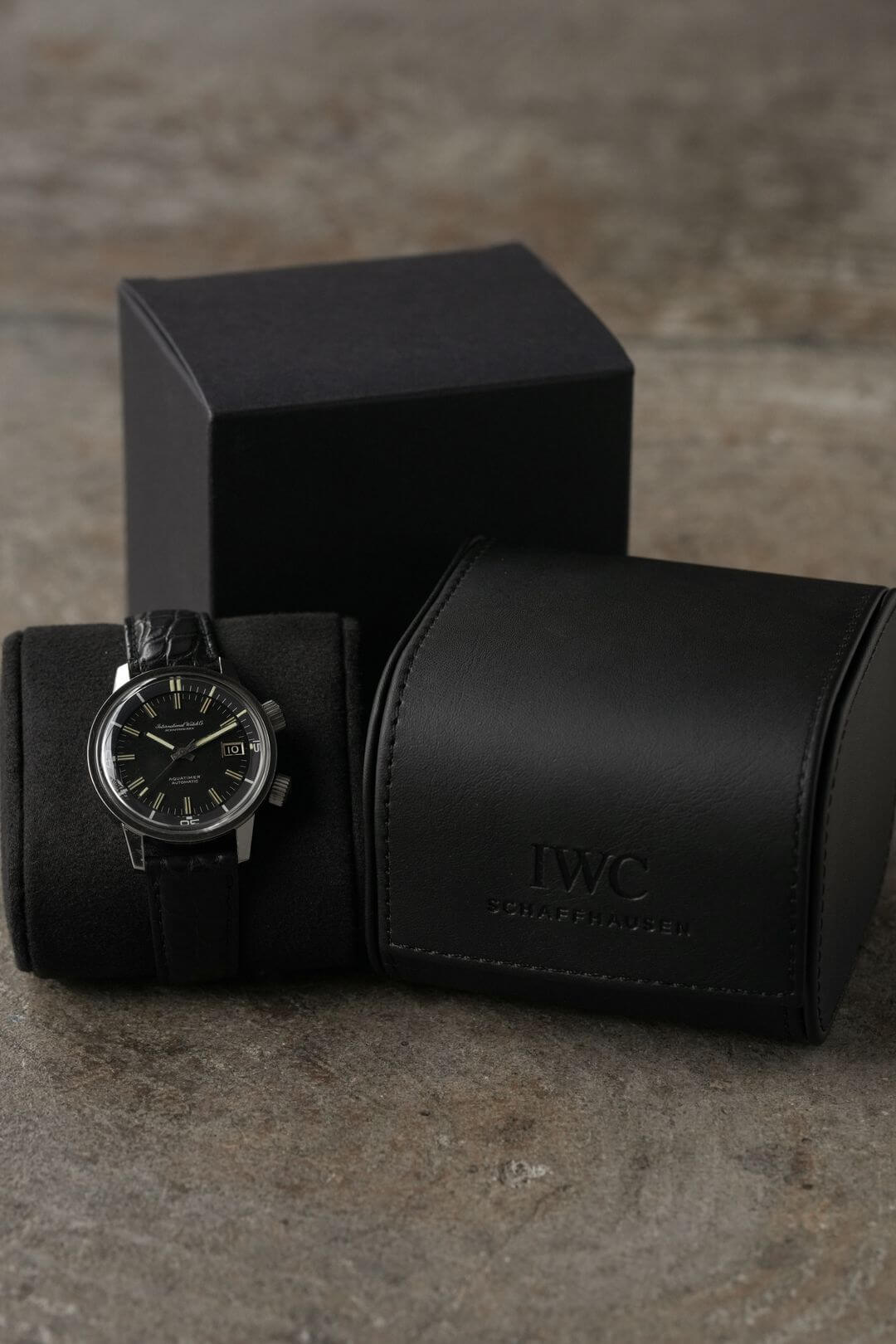 レザーブレスには、当店オリジナルのクロコダイルレザーのブラックをセッティング。ステンレス製のIWC純正尾錠やボックスが付属いたします。