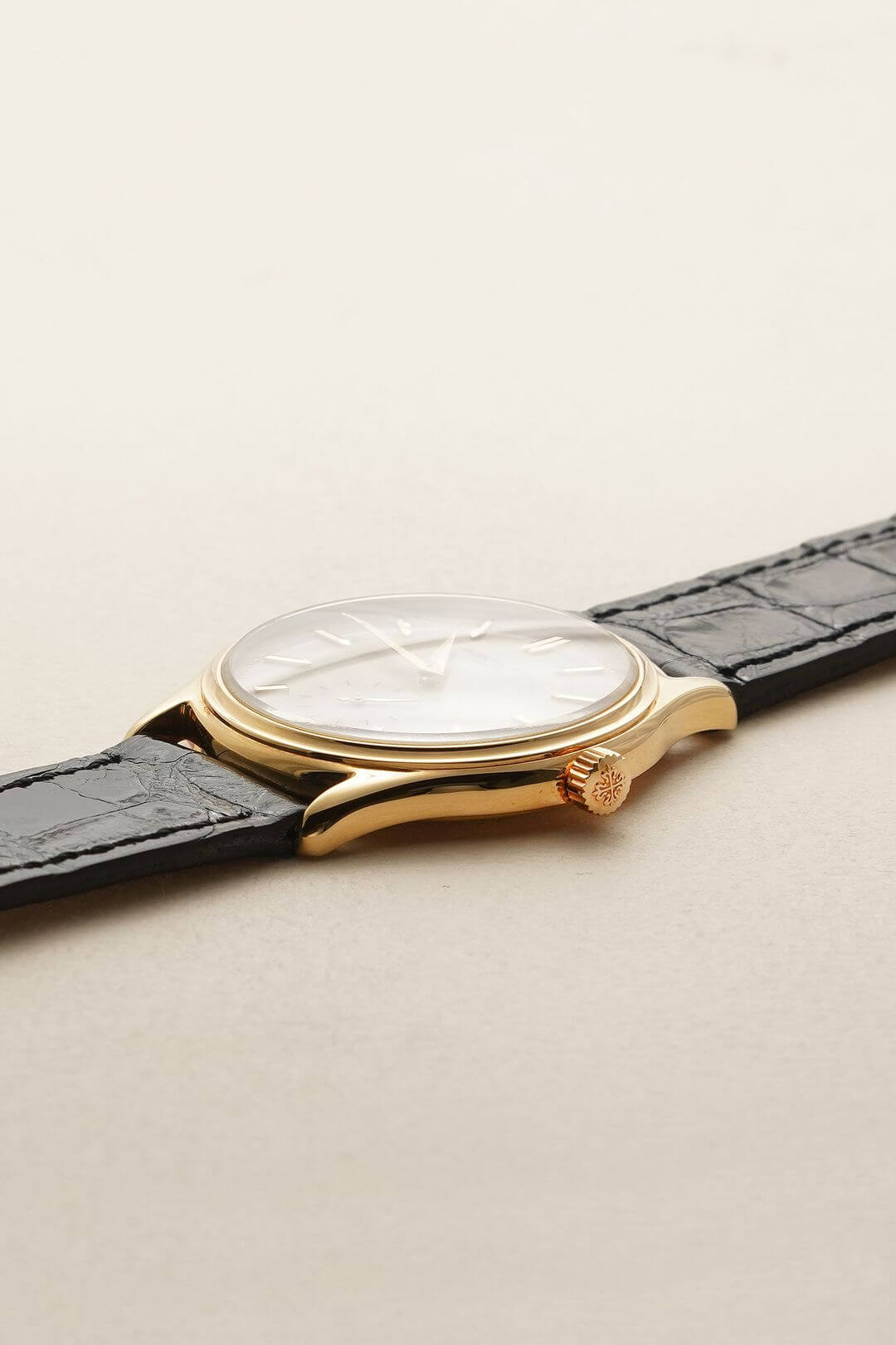 今回は、均整のとれたフォルムで際立つ美観を放ったモデル、Ref.3923のご紹介です。フラットベゼルの[Calatrava/カラトラバ]とは少し違う、エッジを抑えたしなやかな曲線の美しいケースデザインに、6時の位置の[シグマ/σ]マークが表記された通り、バレットインデックスとドットポイントにイエローゴールドが使用された拘りの逸品。凛々しい顔立ちを演出し、さり気なくまとまりのある美しさを感じさせてくれるお洒落な時計です。