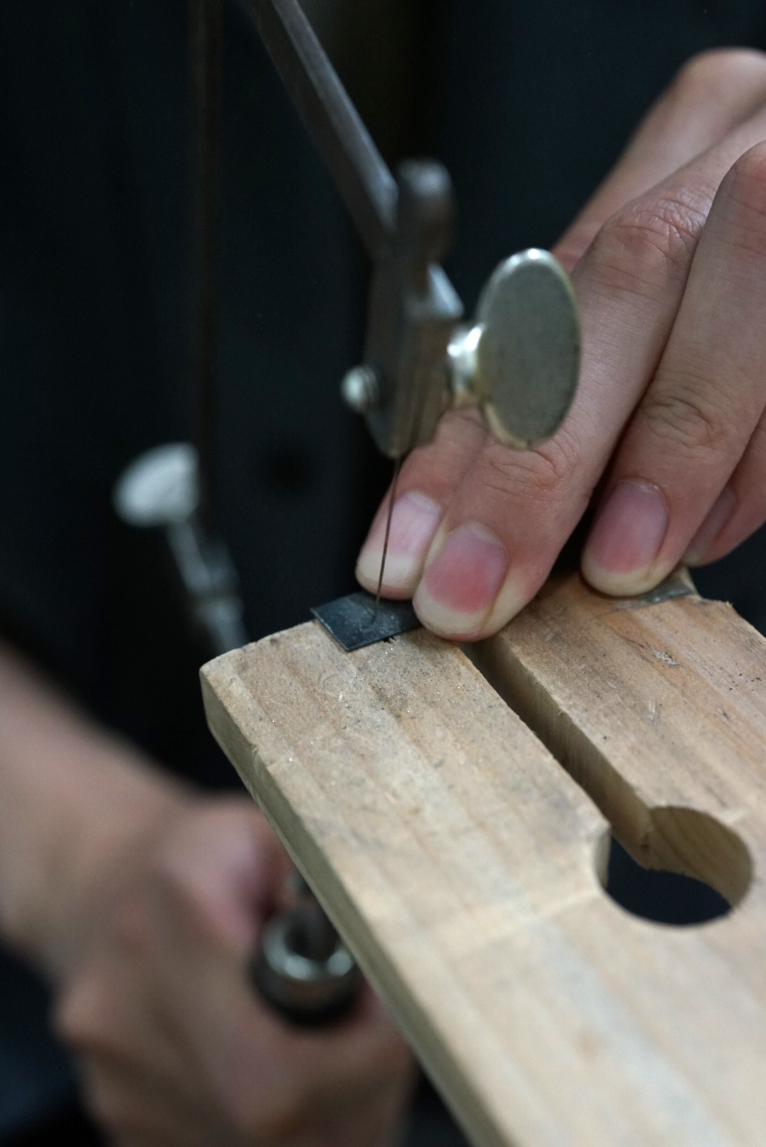 穴開けが完了したら、大まかな下書きをして、形に沿って切っていきます。