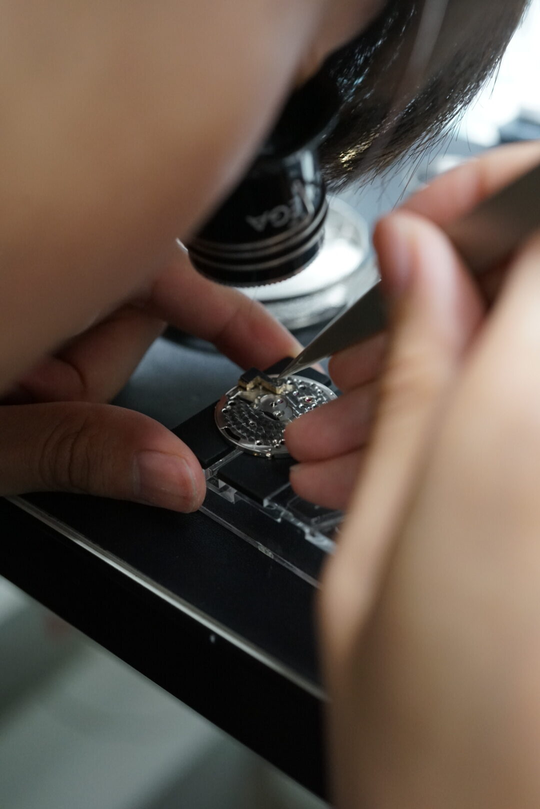 顕微鏡の画像です。受けの角は勿論の事、ルビーが入る穴の周りやアンクルと呼ばれる小さいパーツにも仕上げが施されています。コート・ド・ジュネーブも綺麗です。