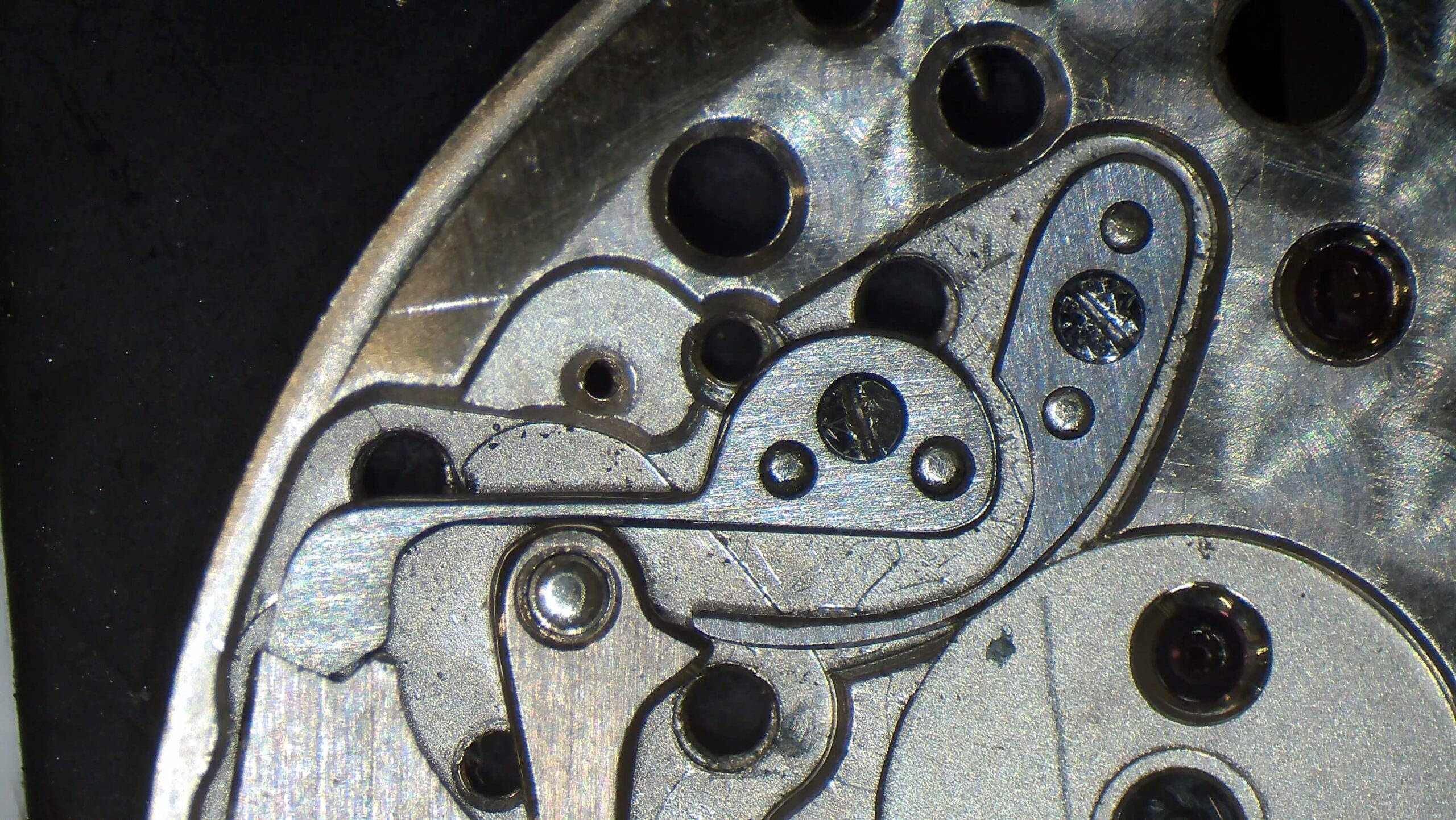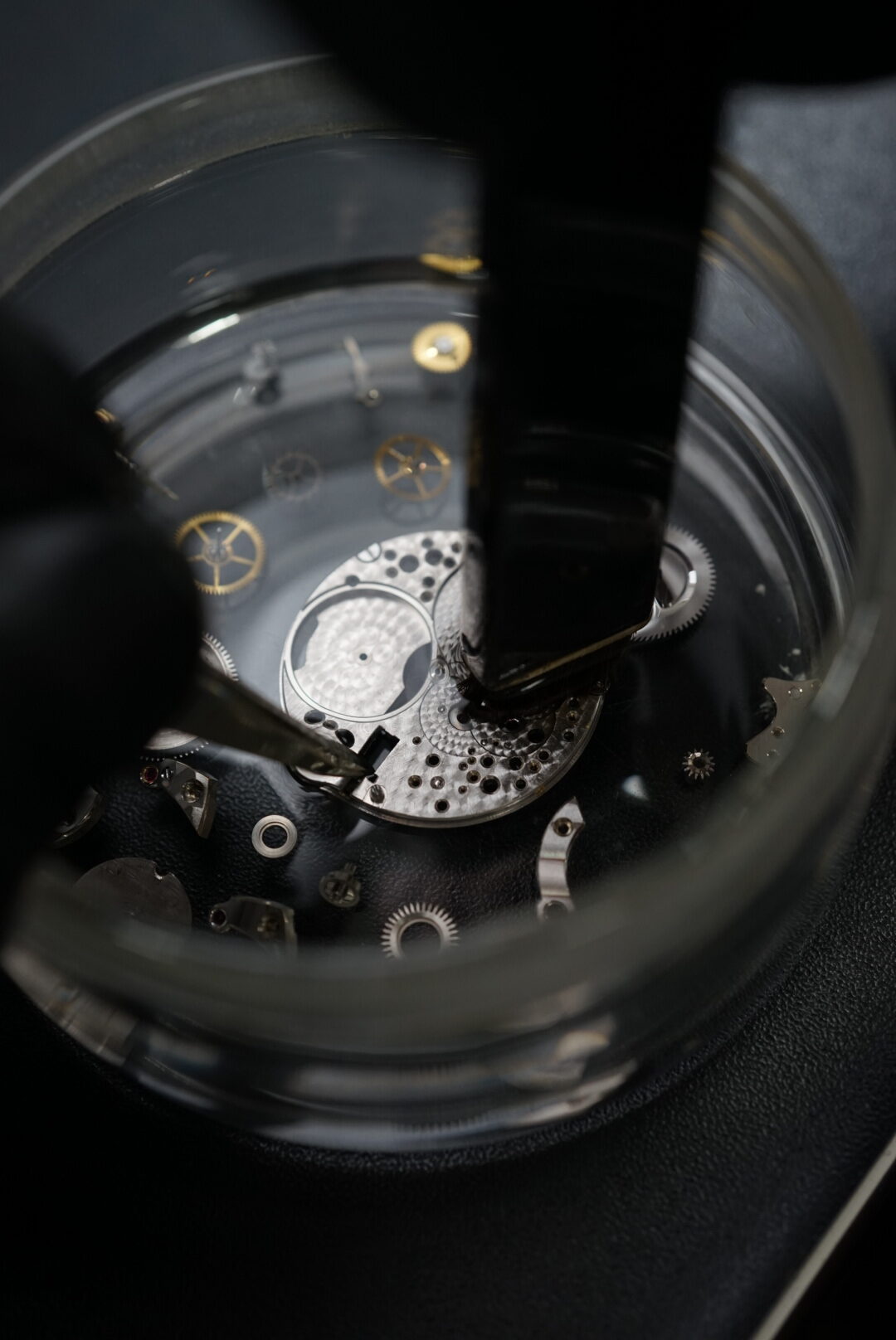 注油をします。完全に見えない箇所ですが、こんなところにもしっかりとペルラージュ仕上げが施されています。
