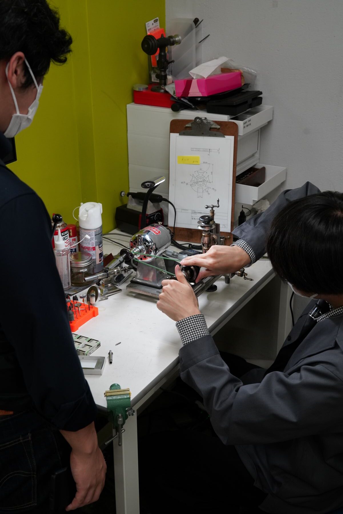 設計図を作成・専用工具の製作・旋盤で切削穴あけ作業・仮仕上げ・動作確認・焼入れ焼き戻し加工・最終仕上げ・動作チェックと今回のような複雑な形状のパーツを製作するにあたって様々な工程があります。